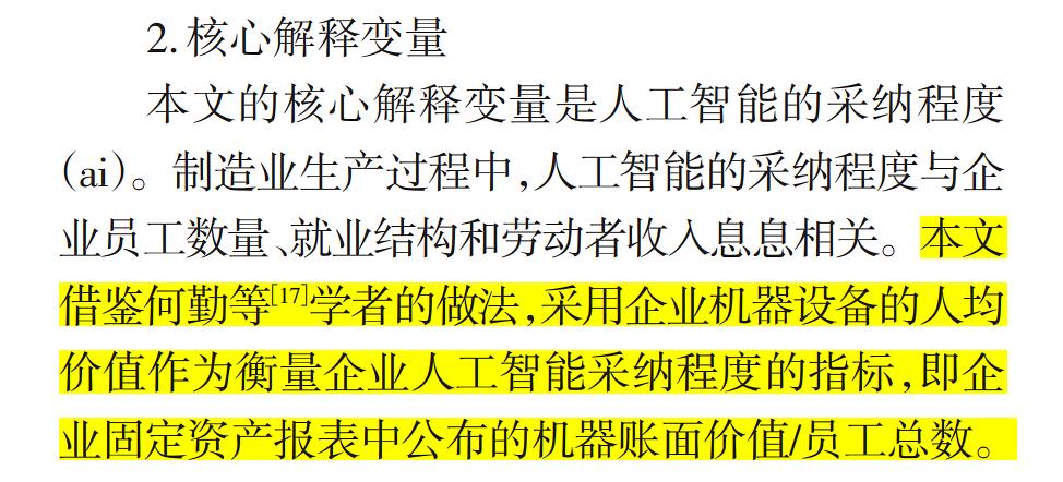 [2]何勤,李雅宁,程雅馨,李晓宇.人工智能技术应用对就业的影响及作用机制研究——来自制造业企业的微观证据[J].中国软科学,2020(S1):213-222.