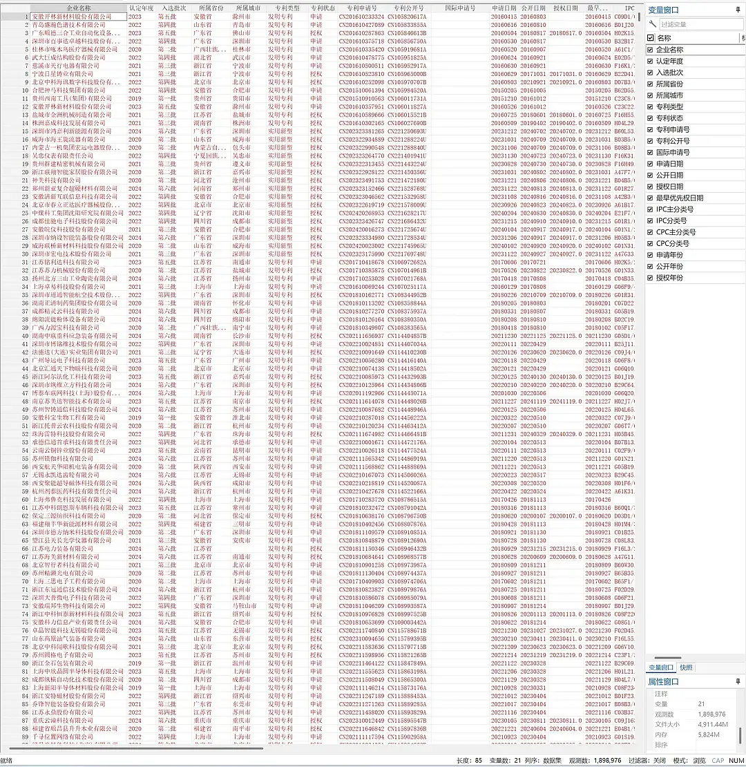 在前文,发布了1.59万家第一至六批专精特新“小巨人”名单。同时整理了“小巨人”企业的财务面板数据。本次,对“小巨人”企业的专利明细数据进行更新,希望对大家的研究有所助益
