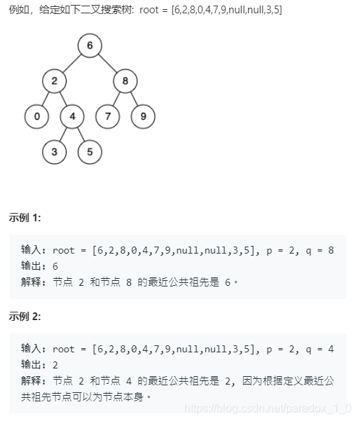 - p、q 为不同节点且均存在于给定的二叉搜索树中。
