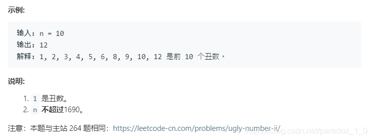 我们把只包含因子 2、3 和 5 的数称作丑数(Ugly Number)。求按从小到大的顺序的第 n 个丑数。