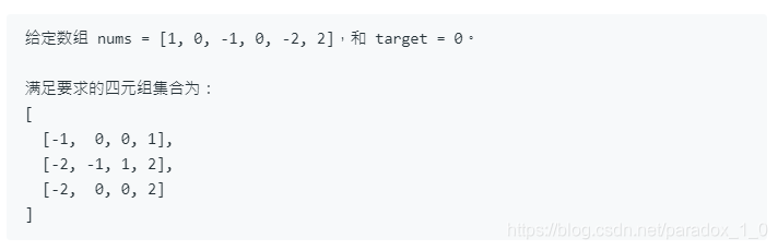 给定一个包含 n 个整数的数组 nums 和一个目标值 target,判断 nums 中是否存在四个元素 a,b,c 和 d ,使得 a + b + c + d 的值与 target 相等?找出所有满足条件且不重复的四元组。