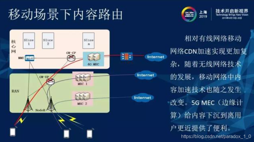 相对有线网络,移动网络CDN加速实现更加复杂,随着无线网络技术的发展,移动网络中内容加速技术也随之发生改变。5G MEC(边缘计算)在移动网络中将内容下沉到用户边缘提供了解决方案。