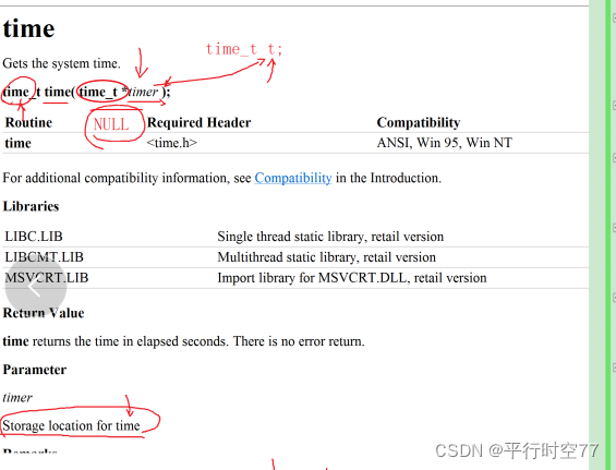 time这个函数是C语言提供的时间戳 (随机值)time参数需要一个指针,返回类型是个整型;因此要获取time的值可以让time返回一个值或者用指针将值提出来。这里srand刚好需要一个整型参数因此我们将time的指针写出空指针,将值返回给srand。