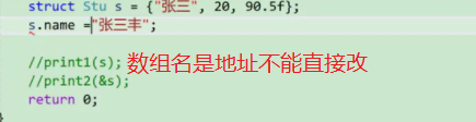 struct Stu s = {"张三", 20, 90.5f};
