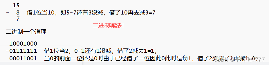 负数的原码得到反码(按位取反,符号位不变),反码得到补码(加1),反得到原码 (符号位不变按位取反再加1)