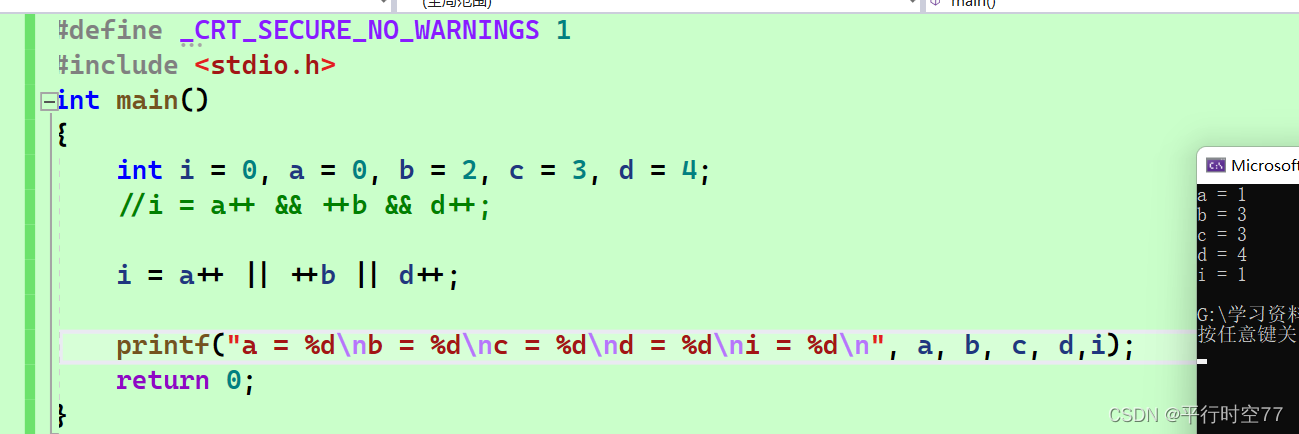 int b = ++a;//前置++,先++,后使用//a=a+1,b=a