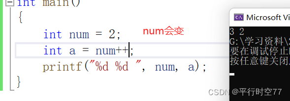 int b = a++;//后置++,先使用,后++。//b=a,a=a+1
