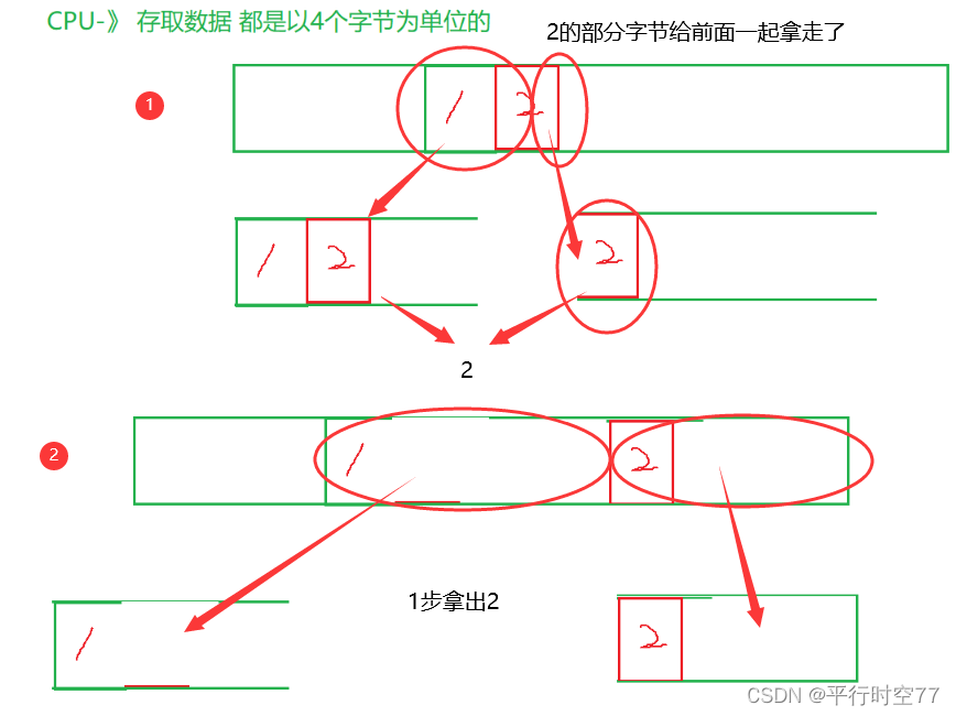 由于计算机的 CPU 通常是按照 4 个字节为单位从内存中读写数据.