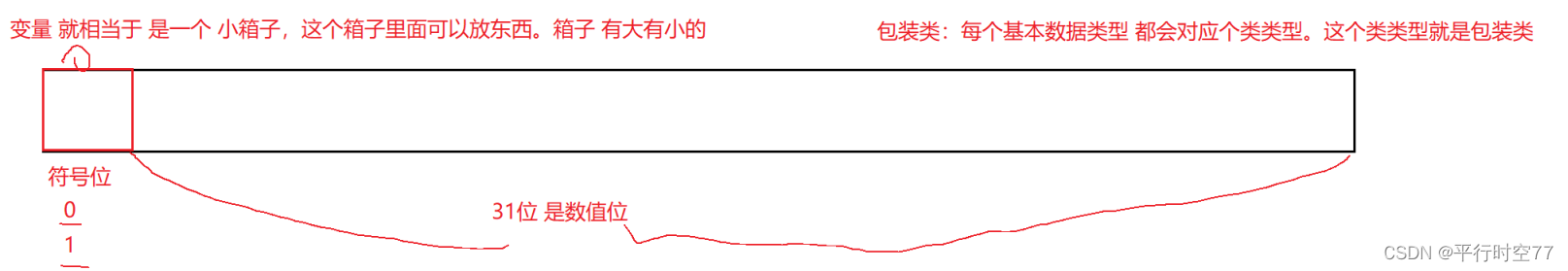 注意:= 在java中表示赋值,即将100交给a,a中保存的值就是100