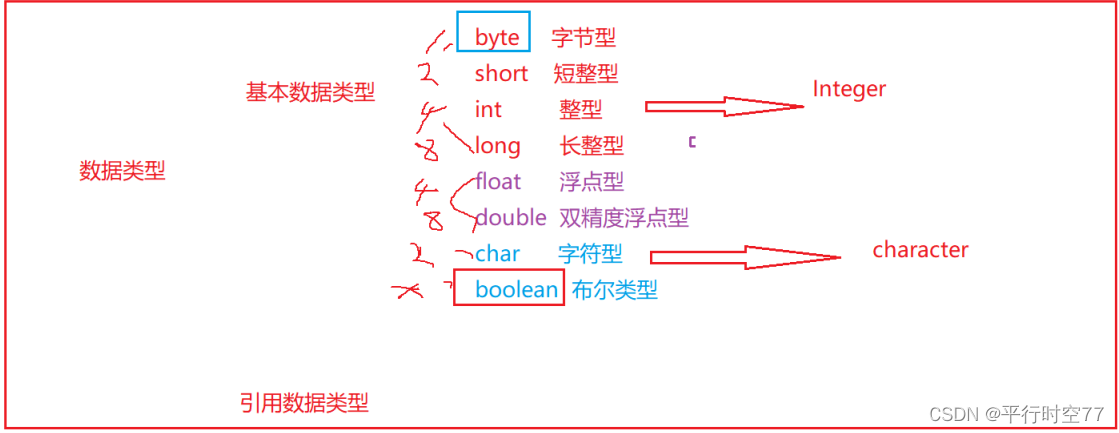 在Java中数据类型主要分为两类:基本数据类型和引用数据类型。