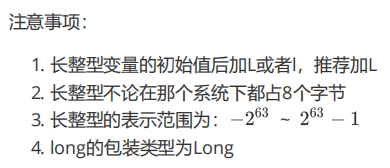 long型变量所能表示的范围:这个数据范围远超过 int 的表示范围.