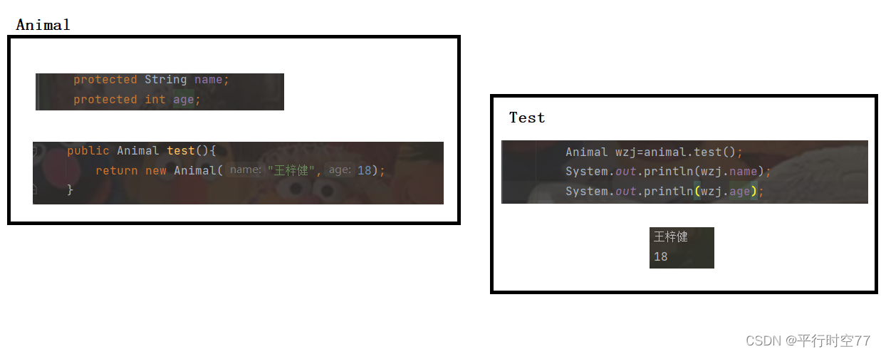 创建一个animal引用去使用test方法返回一个Animal对象赋给wzj