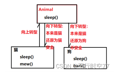 将一个子类对象经过向上转型之后当成父类方法使用,再无法调用子类的方法,