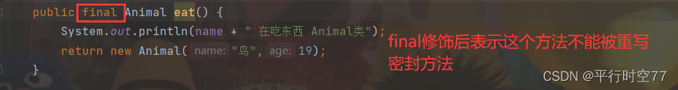 当类的调用者在编写 eat 这个方法的时候, 参数类型为 Animal (父类),