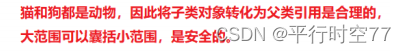 animal是父类类型,但可以引用一个子类对象,因为是从小范围向大范围的转换。
