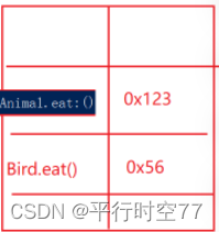 // 编译器在编译代码时,并不知道要调用Dog 还是 Cat 中eat的方法