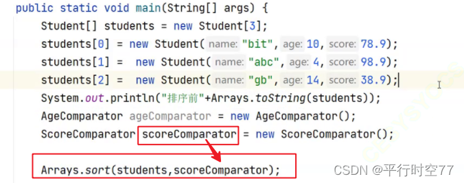 students旁边那个决定了(按哪个引用所实例化的类进行排序)