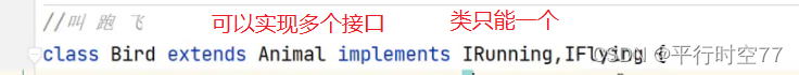 但可以实现(implements)多个接口,间接的实现了多继承.