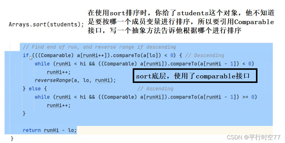 对于 sort 方法来说, 需要传入的数组的每个对象都是 "可比较" 的, 需要具备 compareTo 这样的能力.