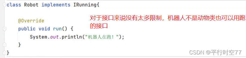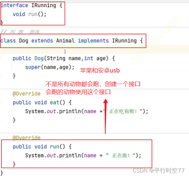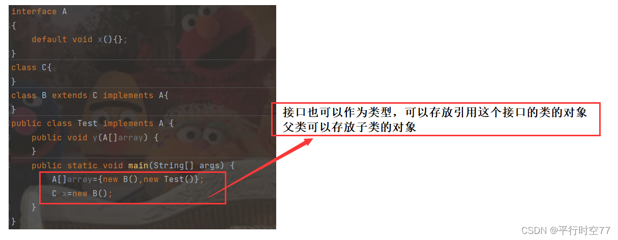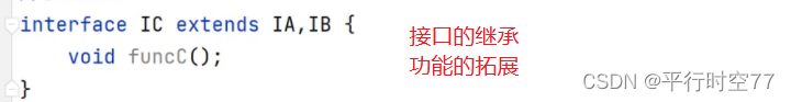 本来不相关的两个类继承了同一接口的话 这两个类就能产生关联.