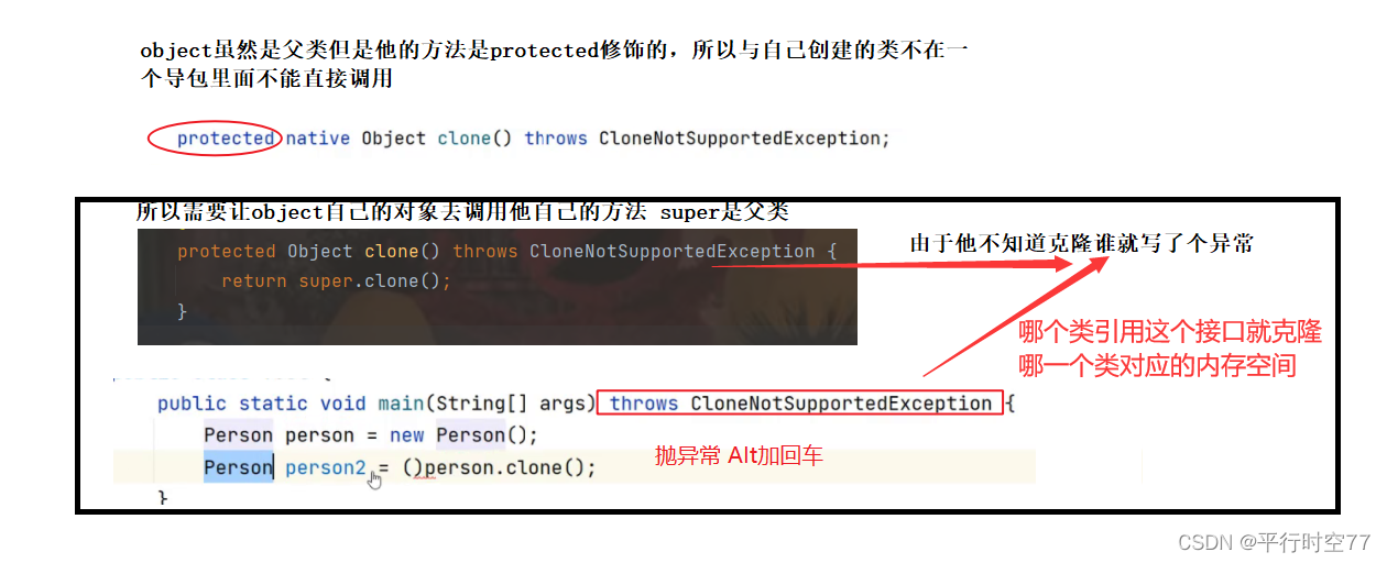 如果要被克隆必须写克隆方法,clone和toString一样,都是object的方法