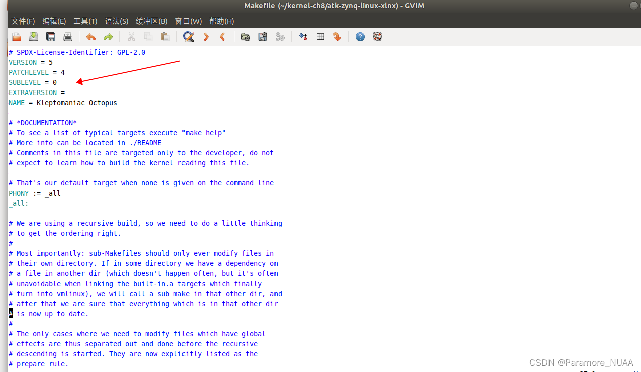 编写makefile,第二行为源码包路径,根据自己的路径填写