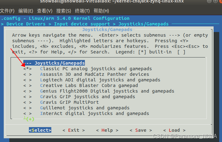 Device Drivers--->Input device support,分别选择Joystick interface和Joysticks/Gamepads