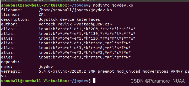 make编译生成joydev.ko,用modinfo查看.ko详细信息,请确认vermagic与你的板子的一致,是否有一些需要提前安装的依赖depends