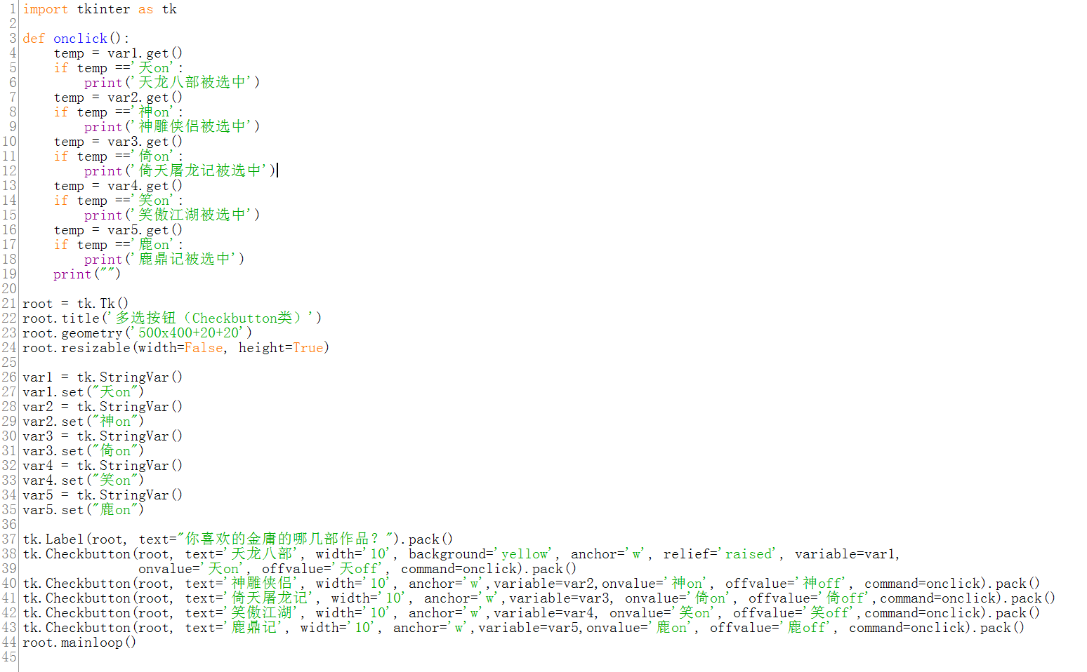 onvalue用于设置多选按钮选中状态的值