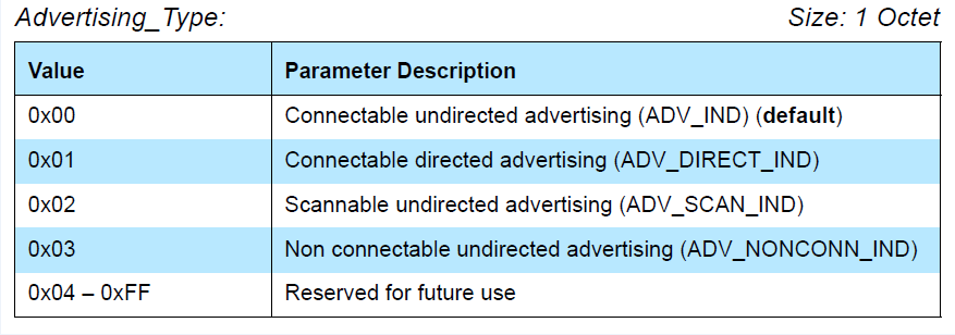 GAPRole_SetParameter(GAPROLE_ADV_EVENT_TYPE, sizeof( uint8 ), &advType );