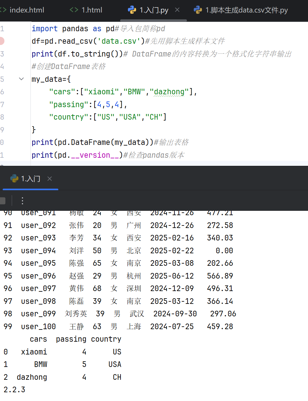 pandas 是一个强大的 Python 数据分析库,提供了高效的数据结构和工具,用于处理和分析结构化数据。其核心数据结构是 DataFrame(二维表格数据)和 Series(一维数据),支持多种数据操作和分析功能。