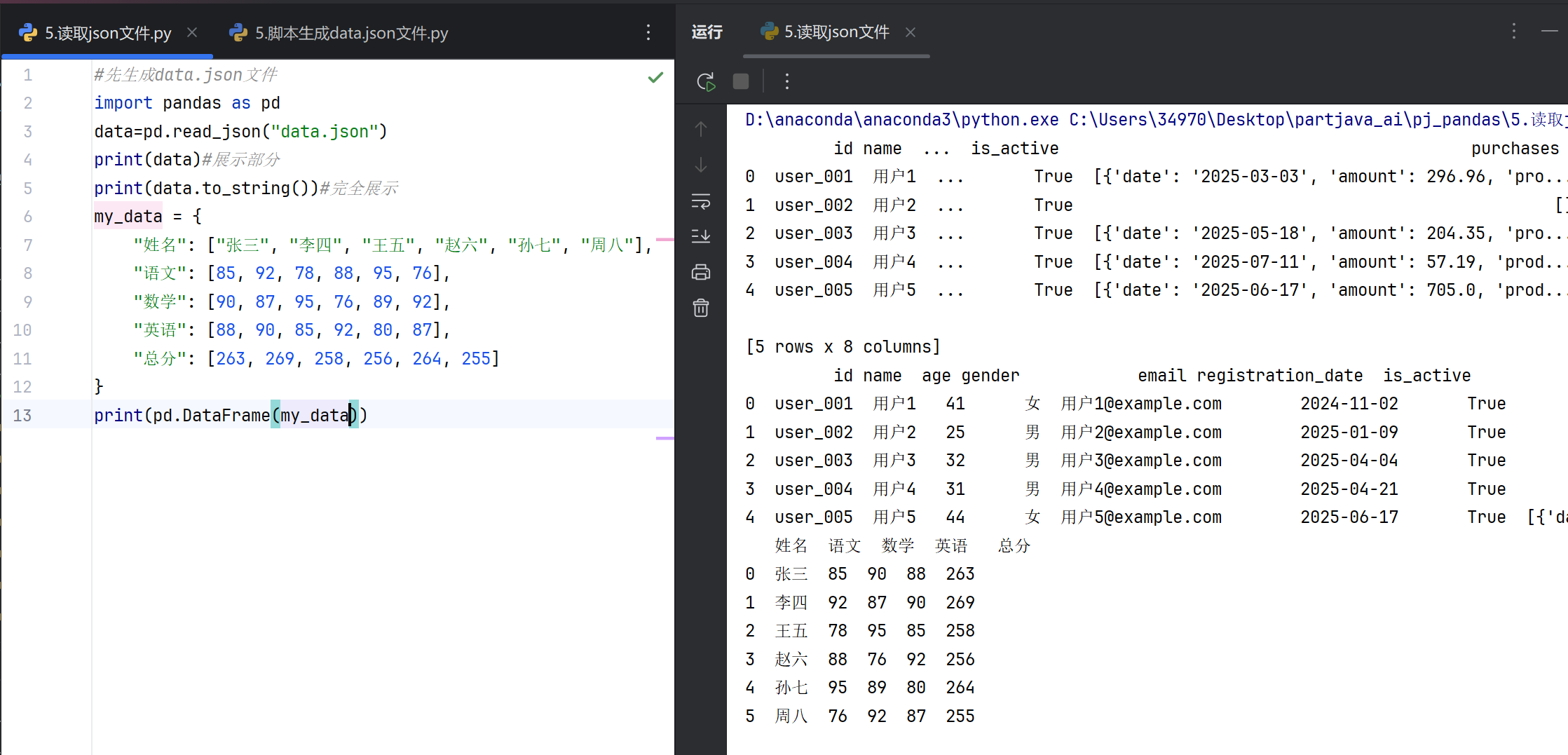 read_json():将 JSON 格式的数据转换为 Pandas 的 DataFrame 对象。支持从文件路径、URL 或 JSON 字符串读取数据,可自动解析嵌套结构。参数 orient 用于指定 JSON 数据的排列方式(如 'records'、'columns')。