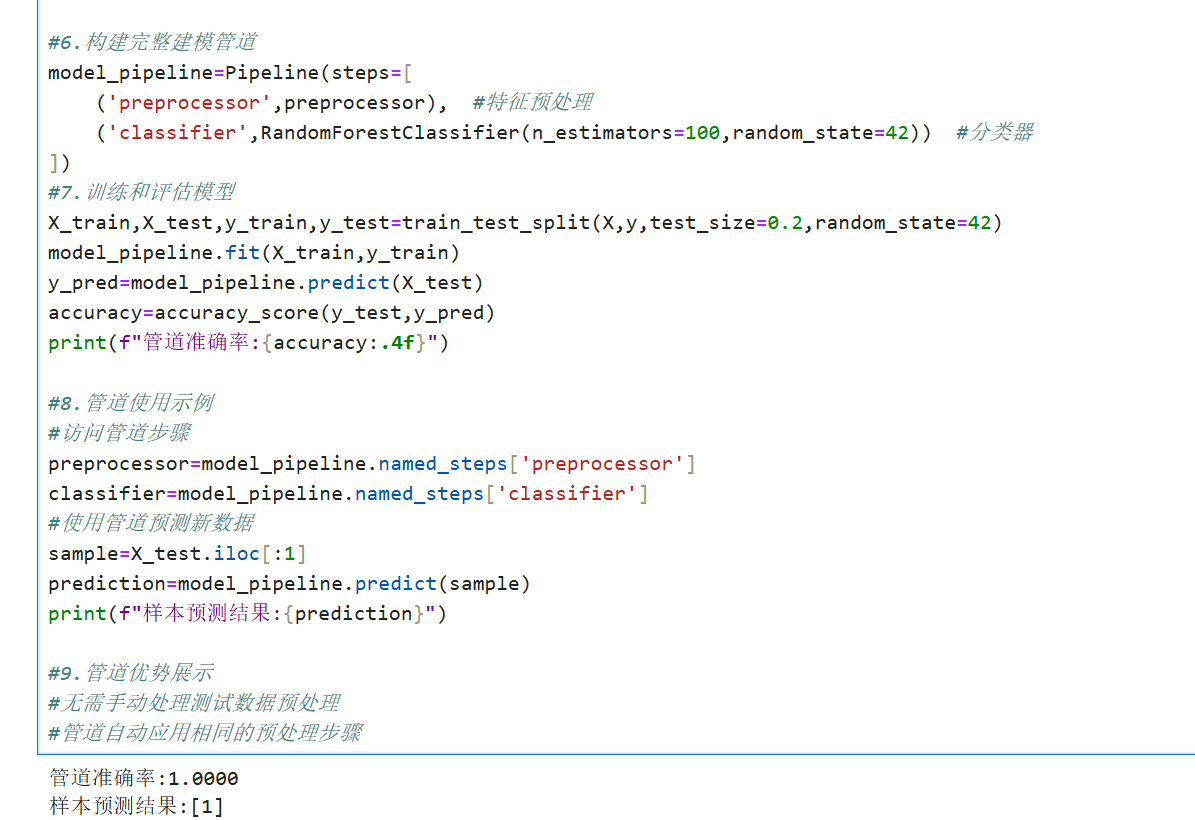 数据处理管道是将多个数据处理步骤串联起来的技术,每个步骤都是一个转换器或估计器。管道的主要优点包括:
