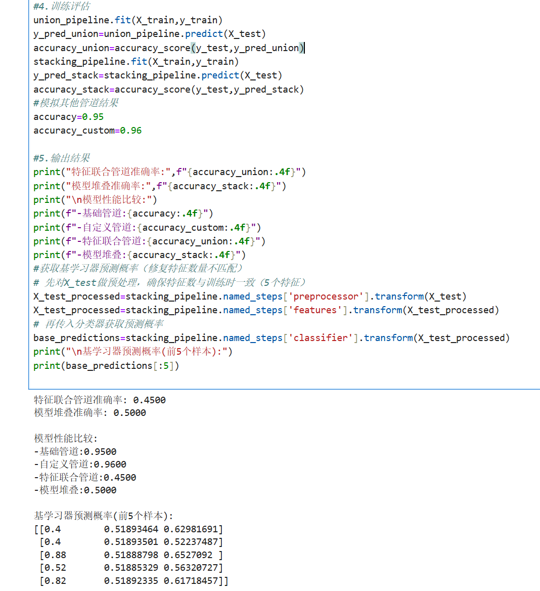 以下代码演示加载数据、训练模型和评估的完整流程: