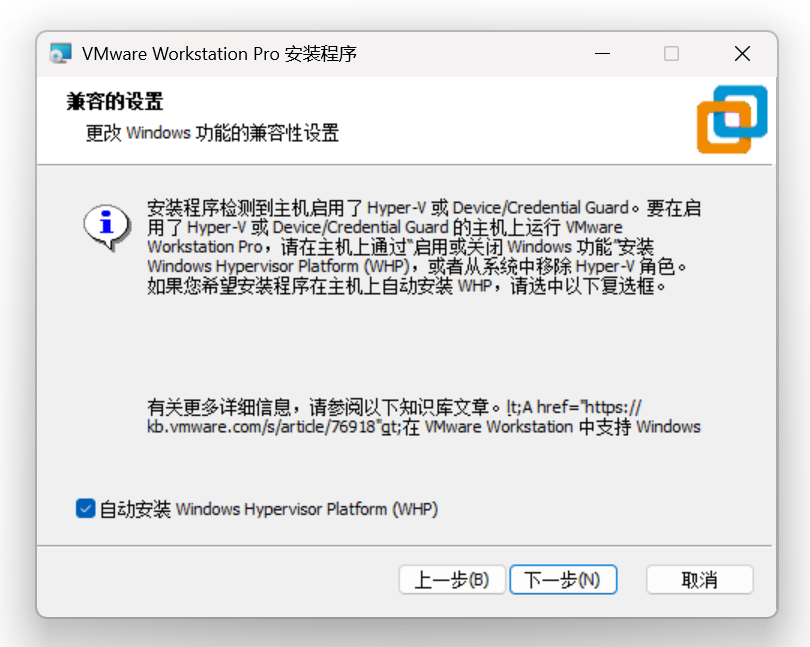 安装步骤,下一步这个“Hyper-V”电脑自带的虚拟化软件,形成兼容冲突,勾选避免兼容冲突。