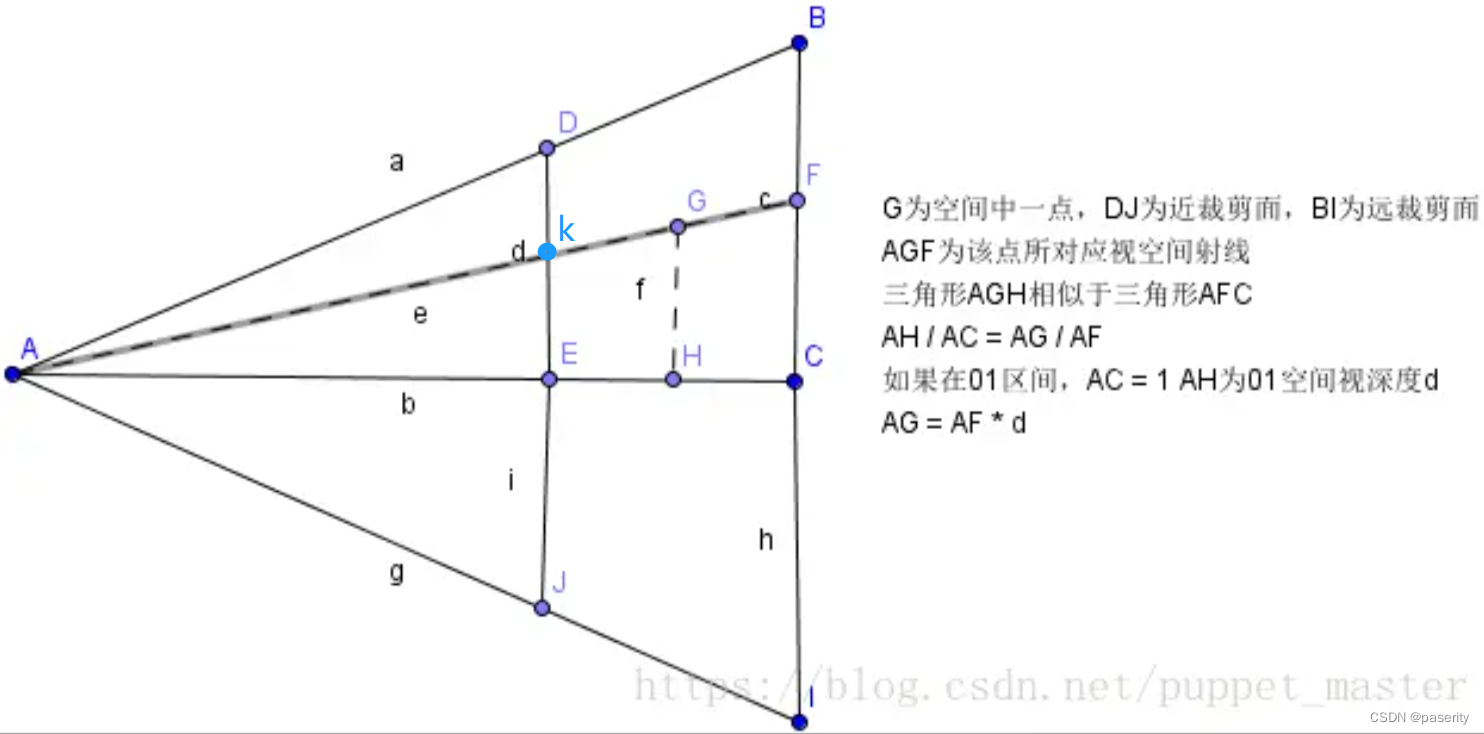 注意这里根据我们选择近平面还是远平面,四个顶点填的向量是不一样的。对应之前的这个图,如果我们四个顶点都填的是远平面向量,那么最后得到的是AF向量,否则就是AK向量了。
