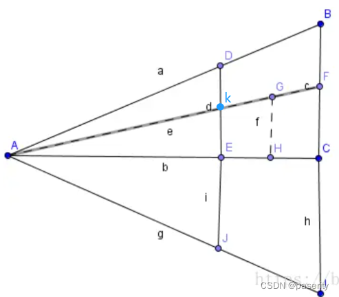 这里借用一下这个图,不妨假设现在从相机右侧方向观察,所以BC对应的是屏幕高度。假设当前屏幕空间点的坐标是UV,G是根据深度缓存重构出的世界空间位置,A点位置是已知的,目标就是求出G点的坐标。