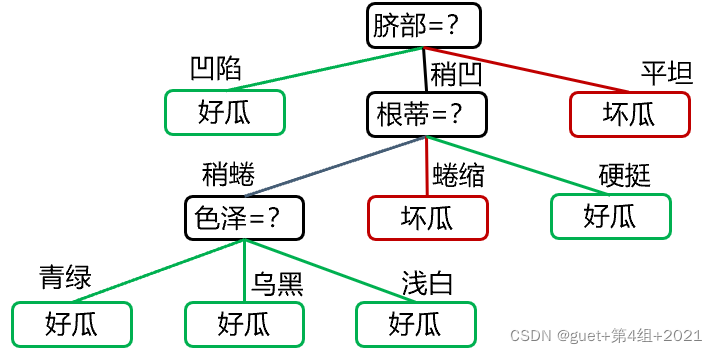学习过程:通过对训练样本的分析来确定“划分属性”(即内部结点所对应的属性)。