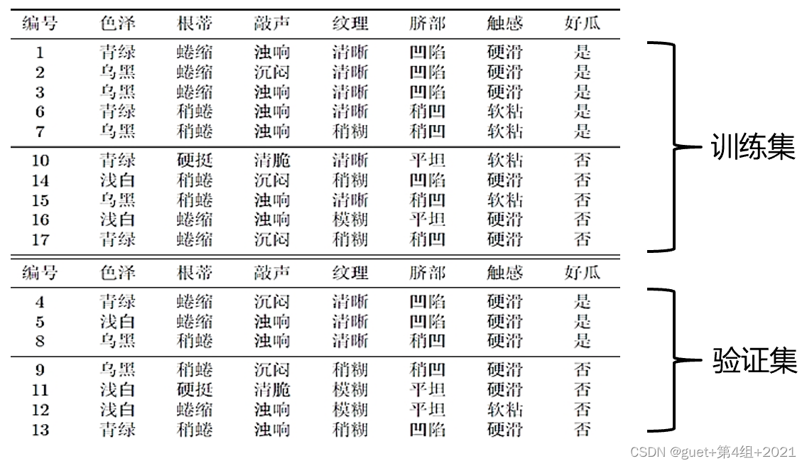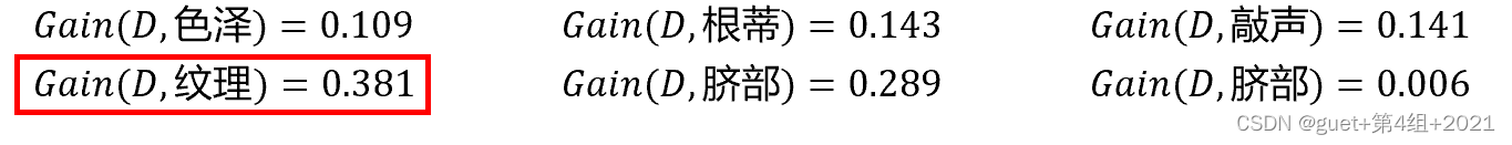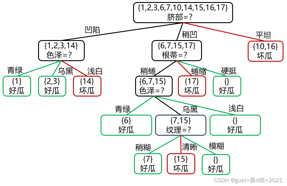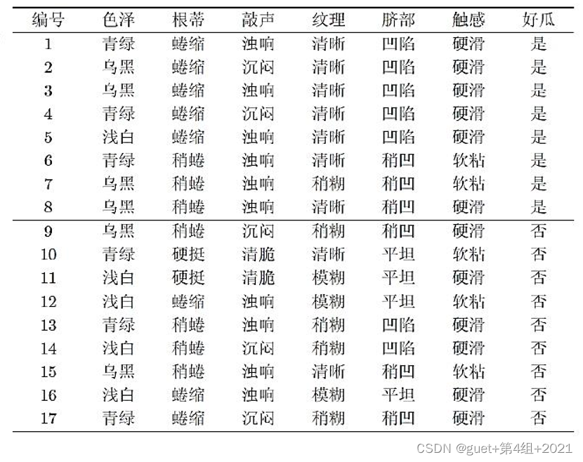 当前属性集合A={色泽,根蒂,敲声,纹理,脐部,触感}