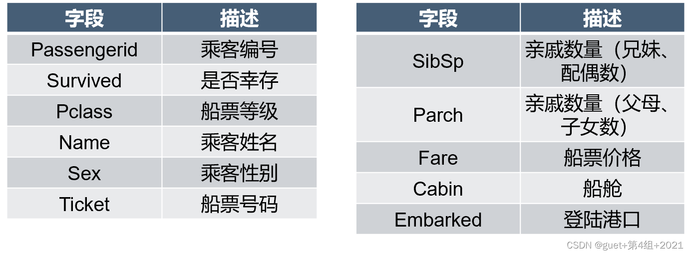 4、其余的字段包括:Pclass、Sex、Age、SibSp、Parch 和 Fare,可能会与乘客的生存预测分类有关系。