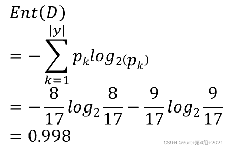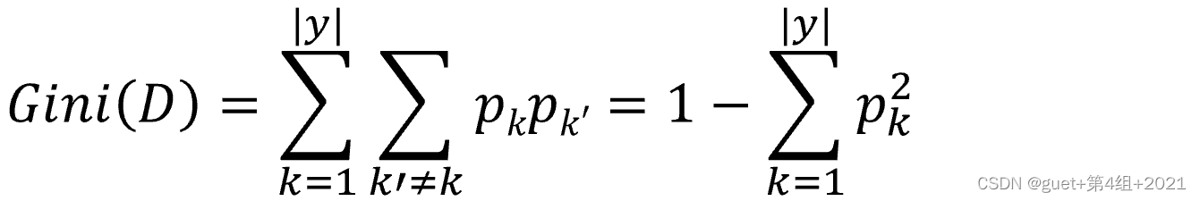假定当前样本集合D中第k类样本(k=1, 2, …, |y|)所占的比例为