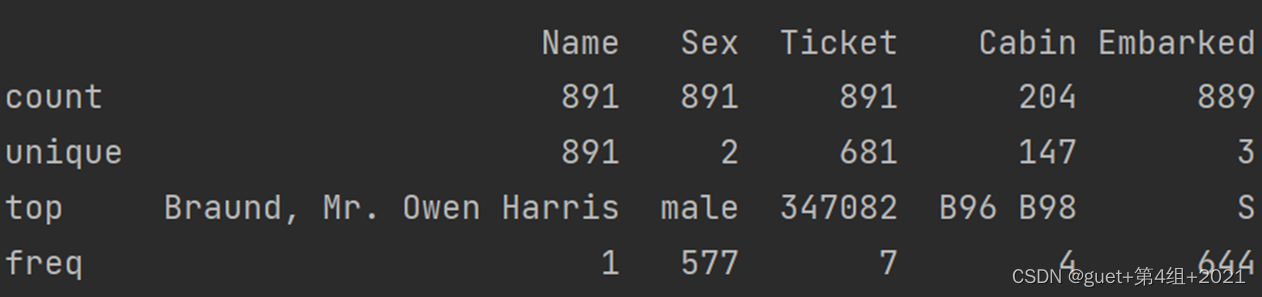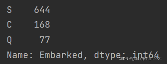 4、Embarked 为登陆港口,有少量的缺失值。将其余缺失的 Embarked 数值均设置为 S(一共3个登陆港口,S港人数最多)。