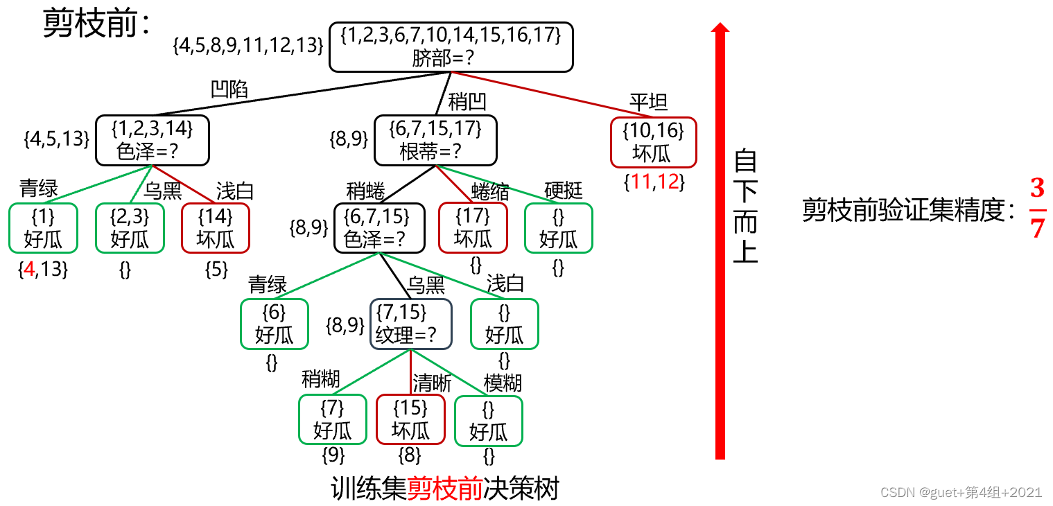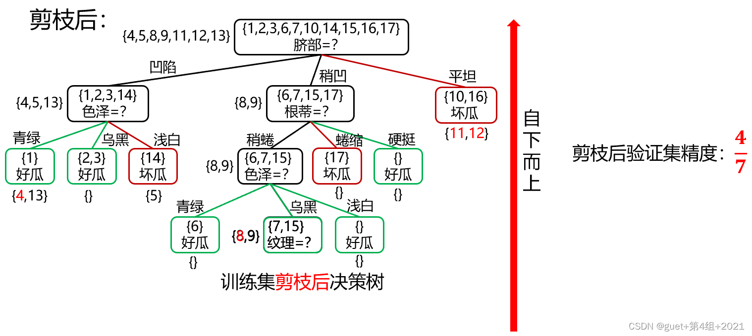 剪枝前验证集精度:3/7 < 剪枝后验证集精度:4/7