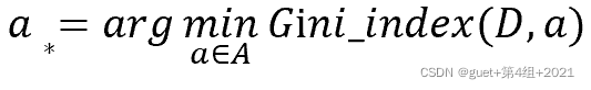 CART决策树算法:在候选属性集合中选取使划分后基尼指数最小的属性。
