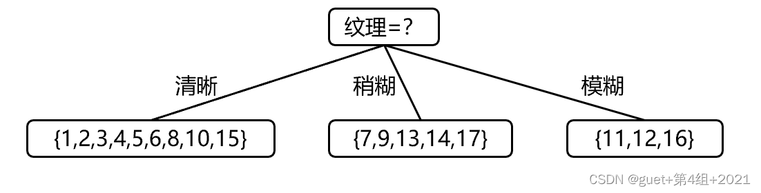 对每个分支结点根据信息增益准则做进一步划分,得到决策树: