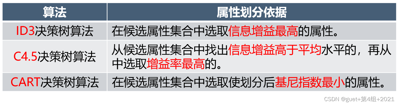 C4.5决策树算法:从候选属性集合中找出信息增益高于平均水平的,再从中选取增益率最高的。