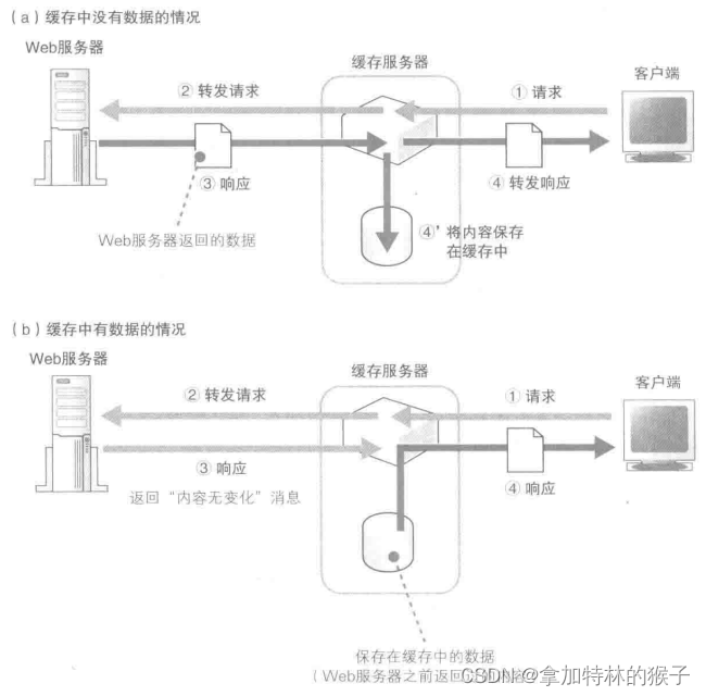 缓存服务器不需要进行网址检查和访问权限见擦汗,以及各种内部操作,只需要将磁盘上保存的数据读出来发送给客户端,因此处理速度较快
