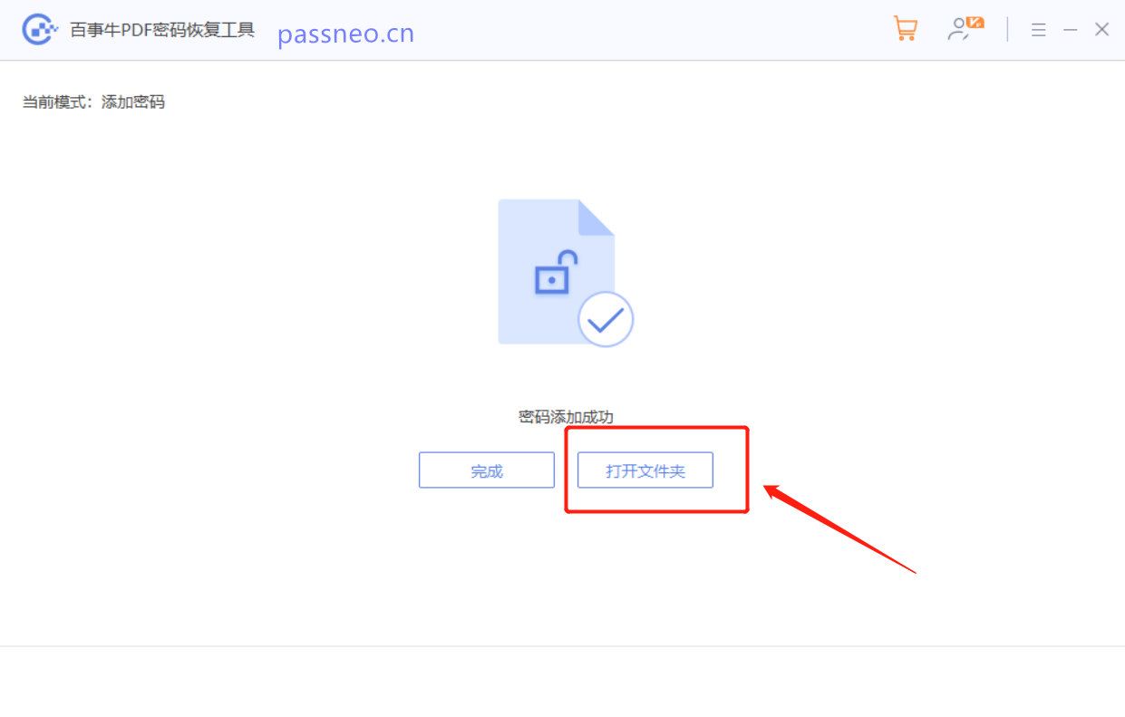 3、设置完“打开密码”的PDF文件会另存为新的文件,点击“打开文件夹”即可看到。