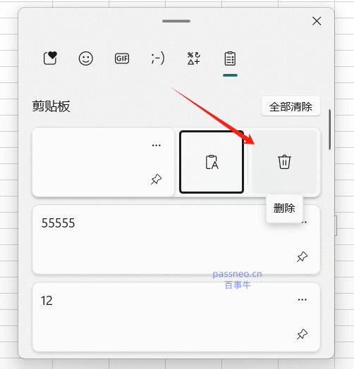 按下快捷键【Windows+V】打开剪贴板历史记录,删除不需要的项,保持剪贴板清爽。