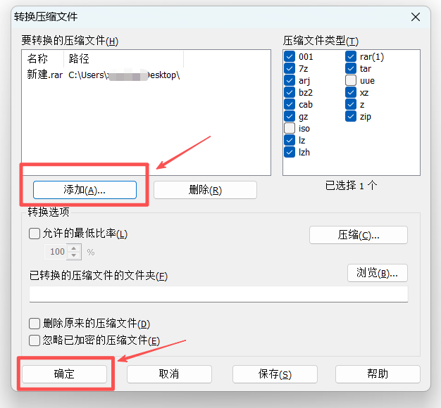 方法2:转换压缩文件格式时去掉密码